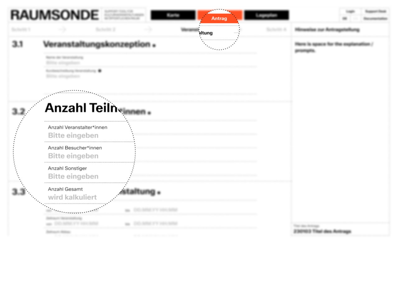 Das Support Center zeigt dir dabei, wie du den Antragsassistenten von Raumsonde für die Beantragung von Genehmigungen und Erstellung von Unterlagen benutzen kannst. Es unterstützt dich dabei, die richtigen Genehmigungen zu identifizieren, erforderliche Unterlagen strukturiert zu erstellen und die formalen Anforderungen der Bezirksämter zu erfüllen.
