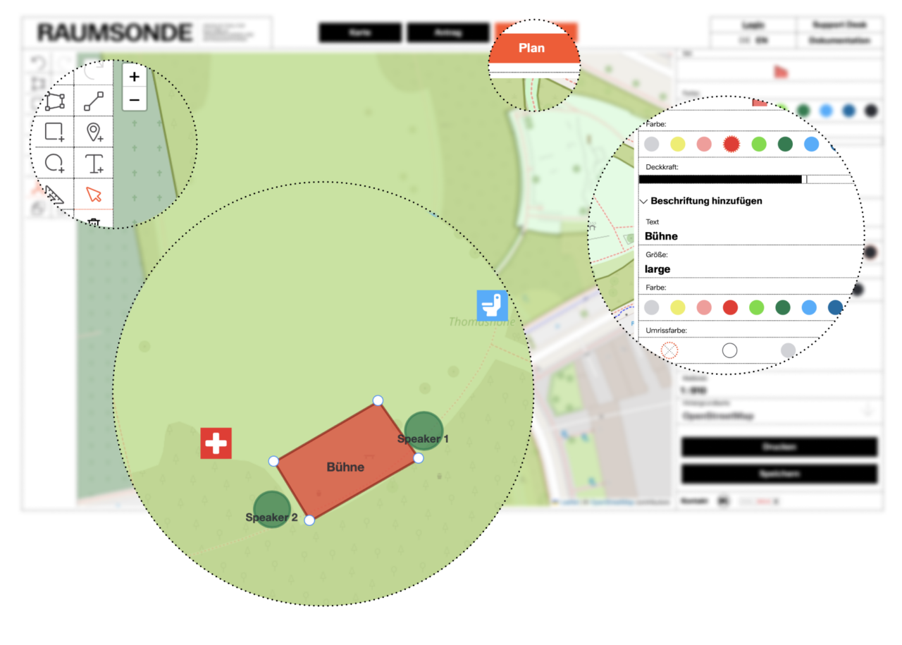 Hinweis: Eine genaue Anleitung zur Nutzung des Lageplan-Tools findest du in der Dokumentation von Raumsonde