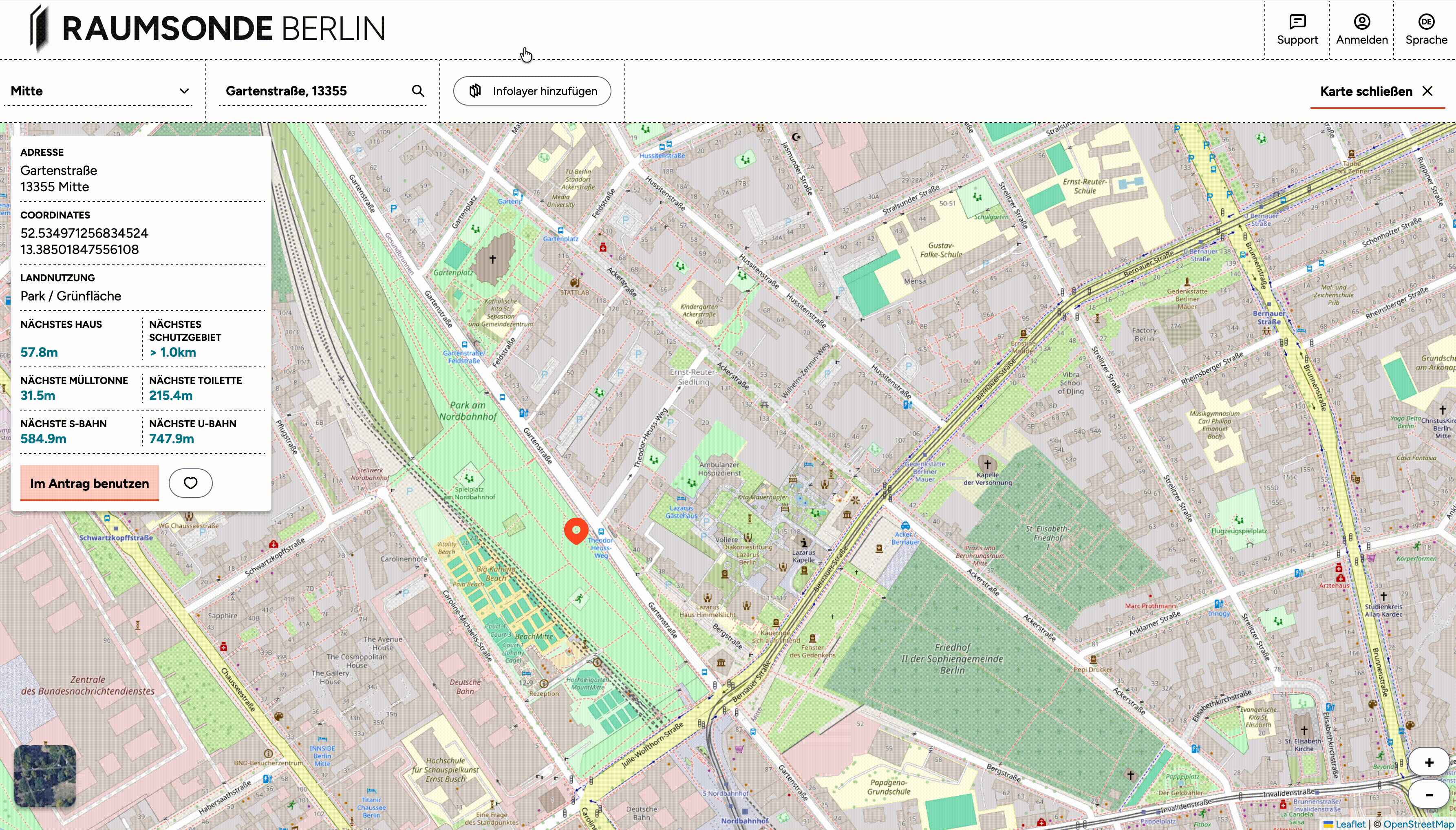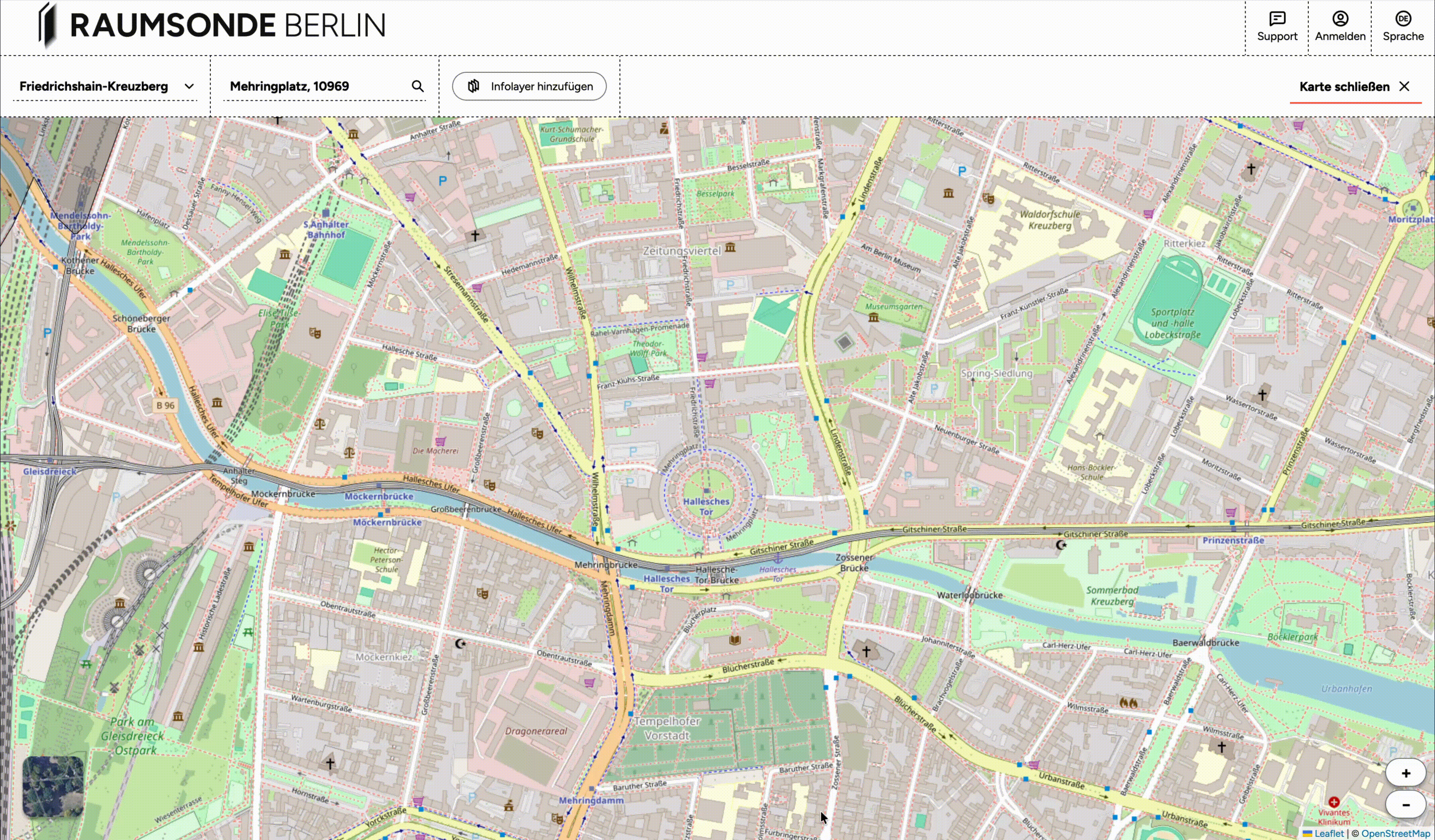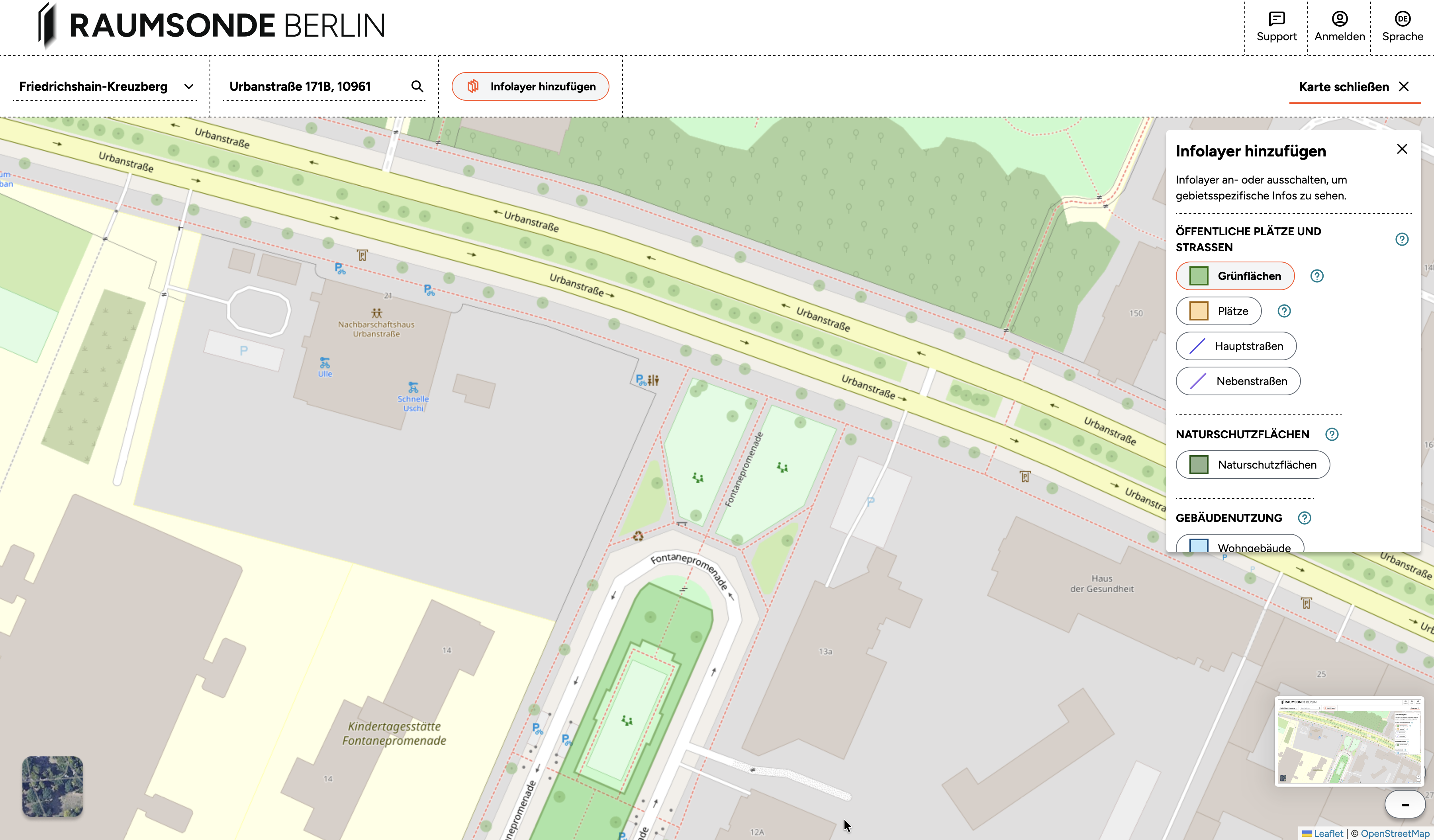 Auf der Raumkarte von Raumsonde kannst du mit Hilfe der Infolayer sehen, ob deine Veranstaltungsfläche auf öffentlichen Straßen oder Plätzen liegt.