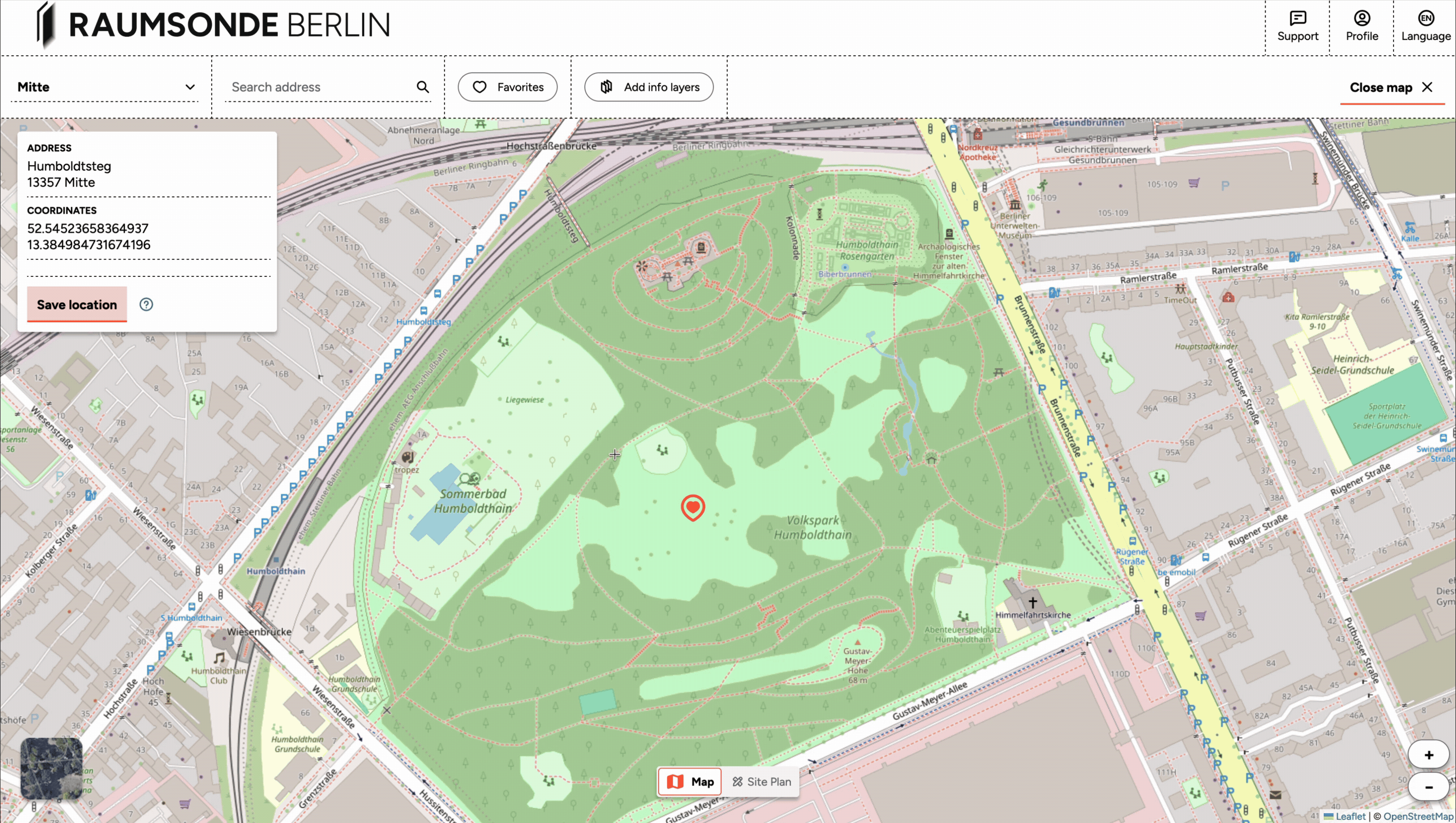 When you log in and begin preparing an application with the Application Assistant, the Site Planner appears as an additional mode in the Space Map. You can switch between the Space Map and the Site Planner using the slider at the bottom centre of the map.